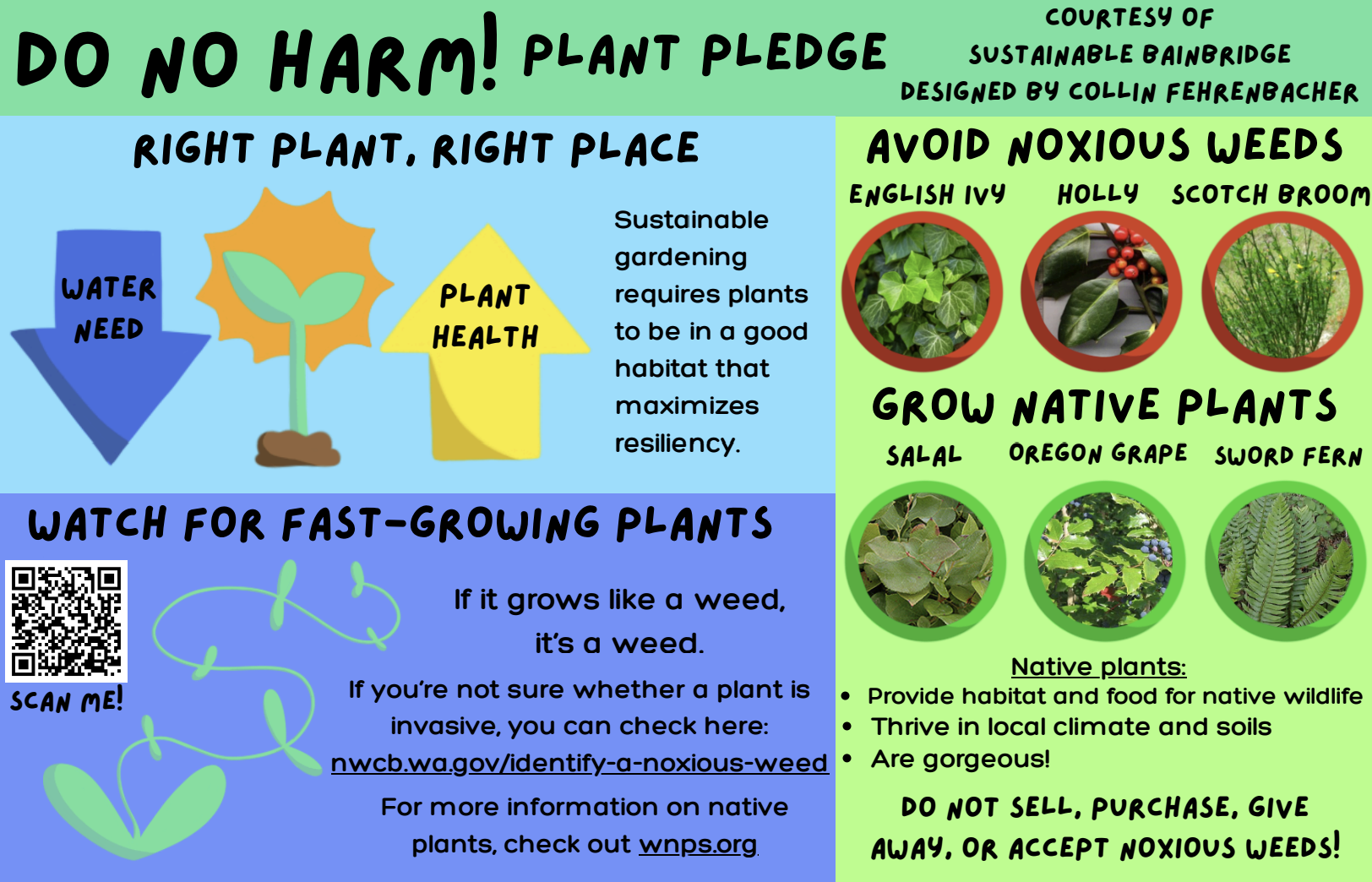 identify-a-noxious-weed or htt ps://invasivespecies.wa.gov/ find-a-priority-species/?_sft_ priority-specie-type=noxious- weeds - Landscape with native plants! Many are gorgeous, establish easily, and thrive in our local climate and soils: https://www.wnps.org